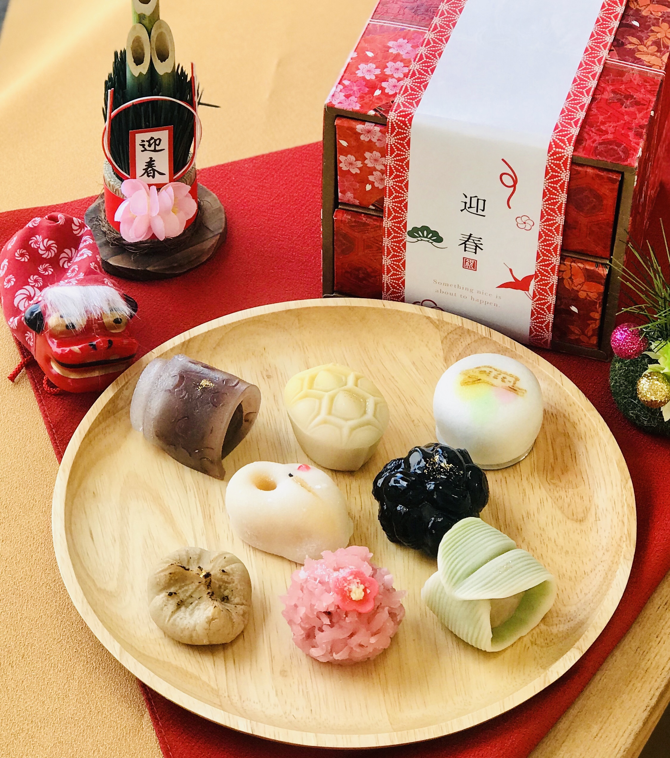 新春上生菓子8個を可愛い2段の引き出しBOXに入れました!