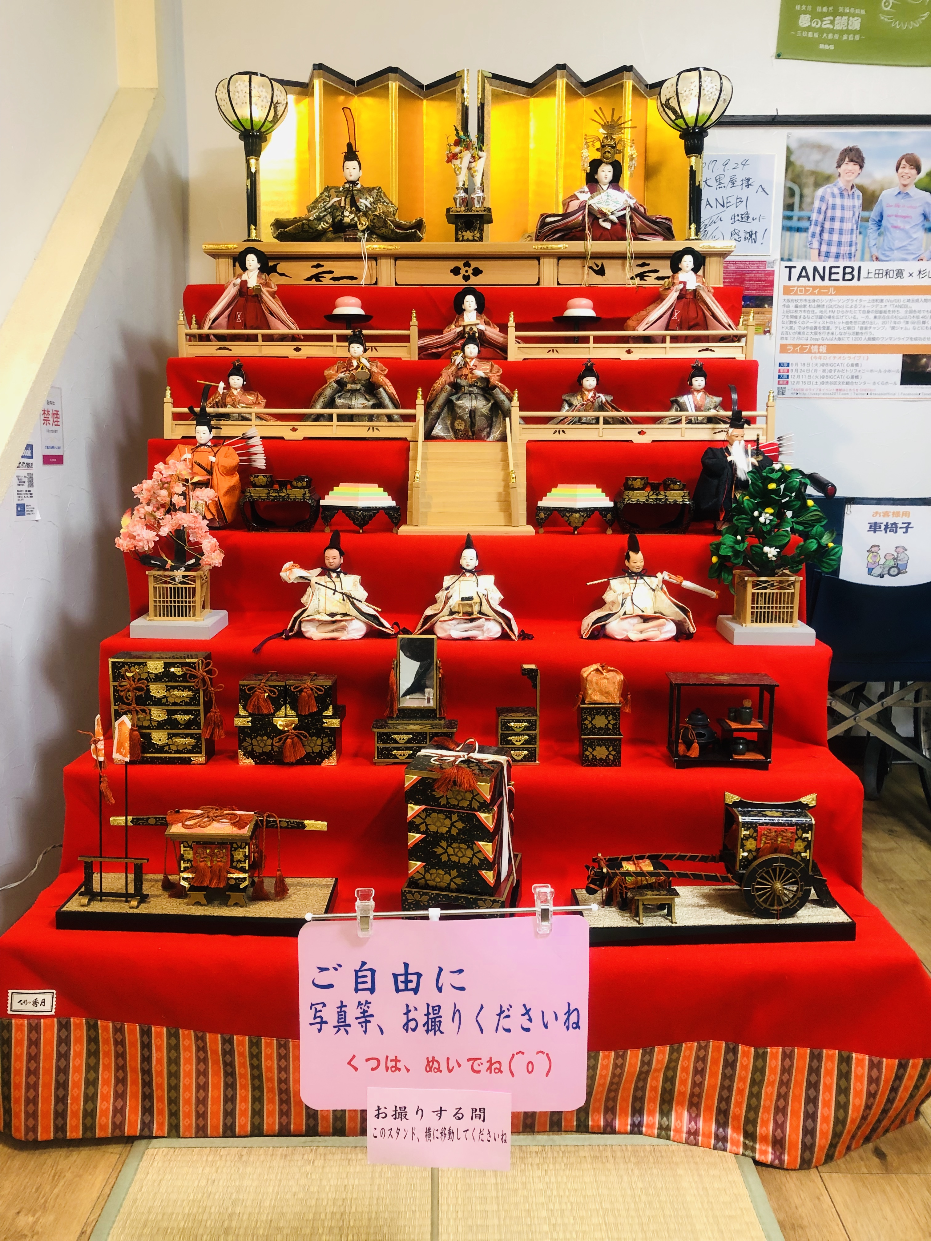 大峰本店入ったところにお雛様の7段飾りを飾ってます。 お子さまと一緒に写メってください! スタッフにお声掛けいただければ、 撮影のお手伝いさせていただきます(^^)