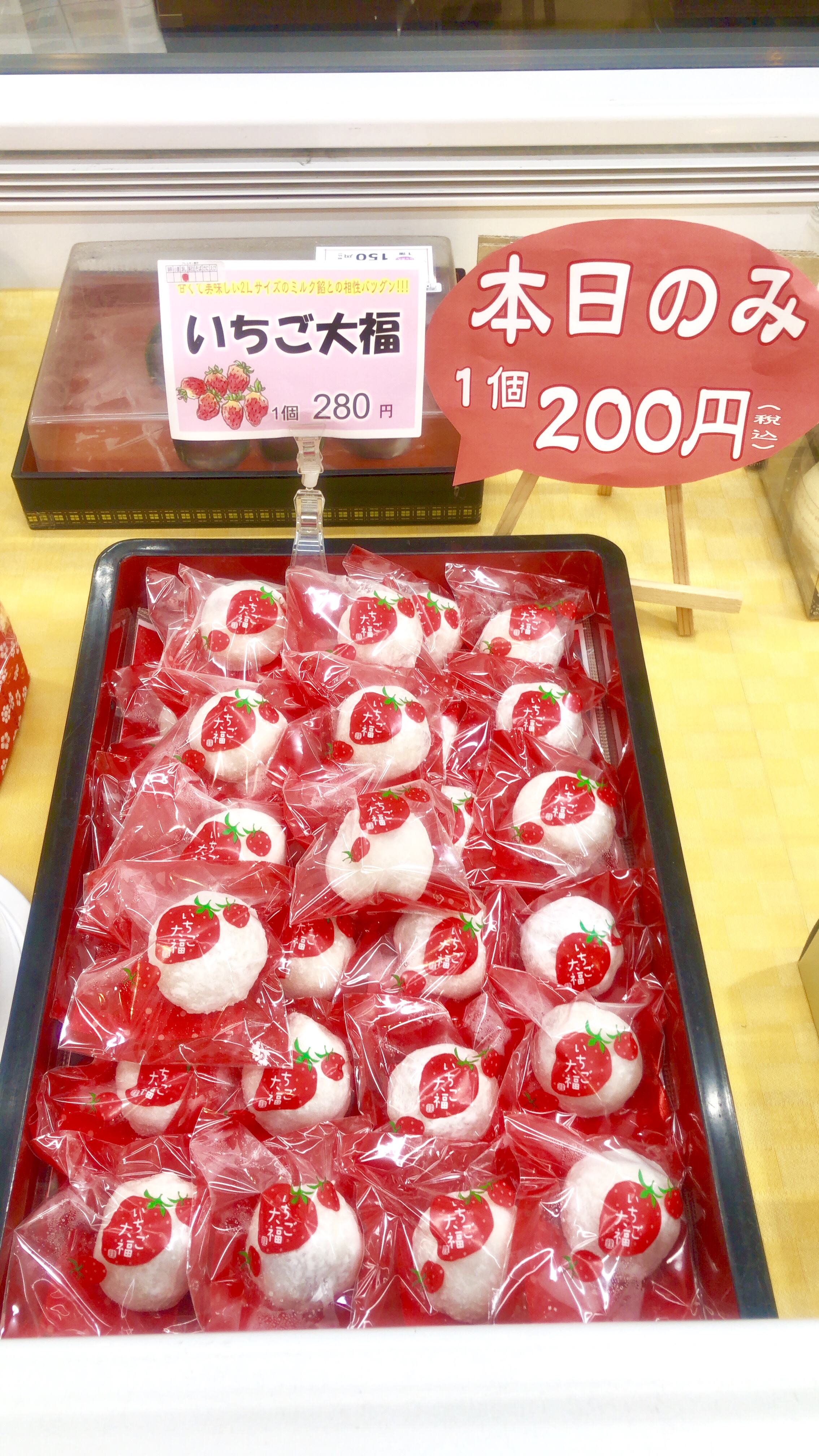 和スイーツでも 特に人気の季節商品「いちご大福」を 本日に限り、280円→200円に❗️ 売り切れ次第終了となります。 とってもお得なので、手みやげや お茶うけにいかがですか? ※津田駅前店は本日定休日です。