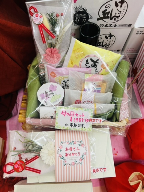 5/8(日)は母の日ですね。 日頃の感謝を込めて、お菓子を贈りましょう☺️ 今人気の「ありがとうおせんべい」も入った詰合わせ 「母の日セット」も登場! 数量限定ですので、お早めに😊