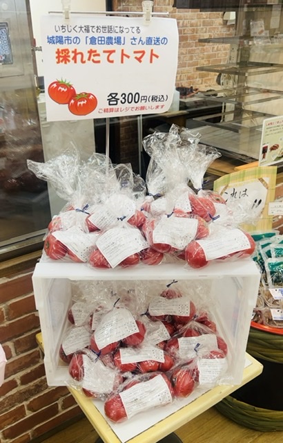 昨年美味しいと大好評でした、 城陽市の倉田農場さんの「🍅完熟トマト」 昨日入荷しました❗️ 大黒屋全店で販売中です。 数量限定ですので、お早めに! 1袋300円 レジにてお支払い願います。