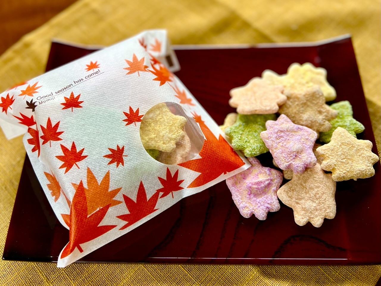 徐々に秋が深まってきましたね。 当店では、季節のあられシリーズの「もみじの里」が好評販売中です! サクッとしたあられに、ほんのり甘い抹茶や紫芋、パンプキンのパウダーをまぶしてありますので、一色づつ違ったお味が楽しめます。 箱入りご進物・ギフトの詰合わせにもある程度対応できますので、お気軽にお声掛けくださいね😊 おひとつ 380円(税込)