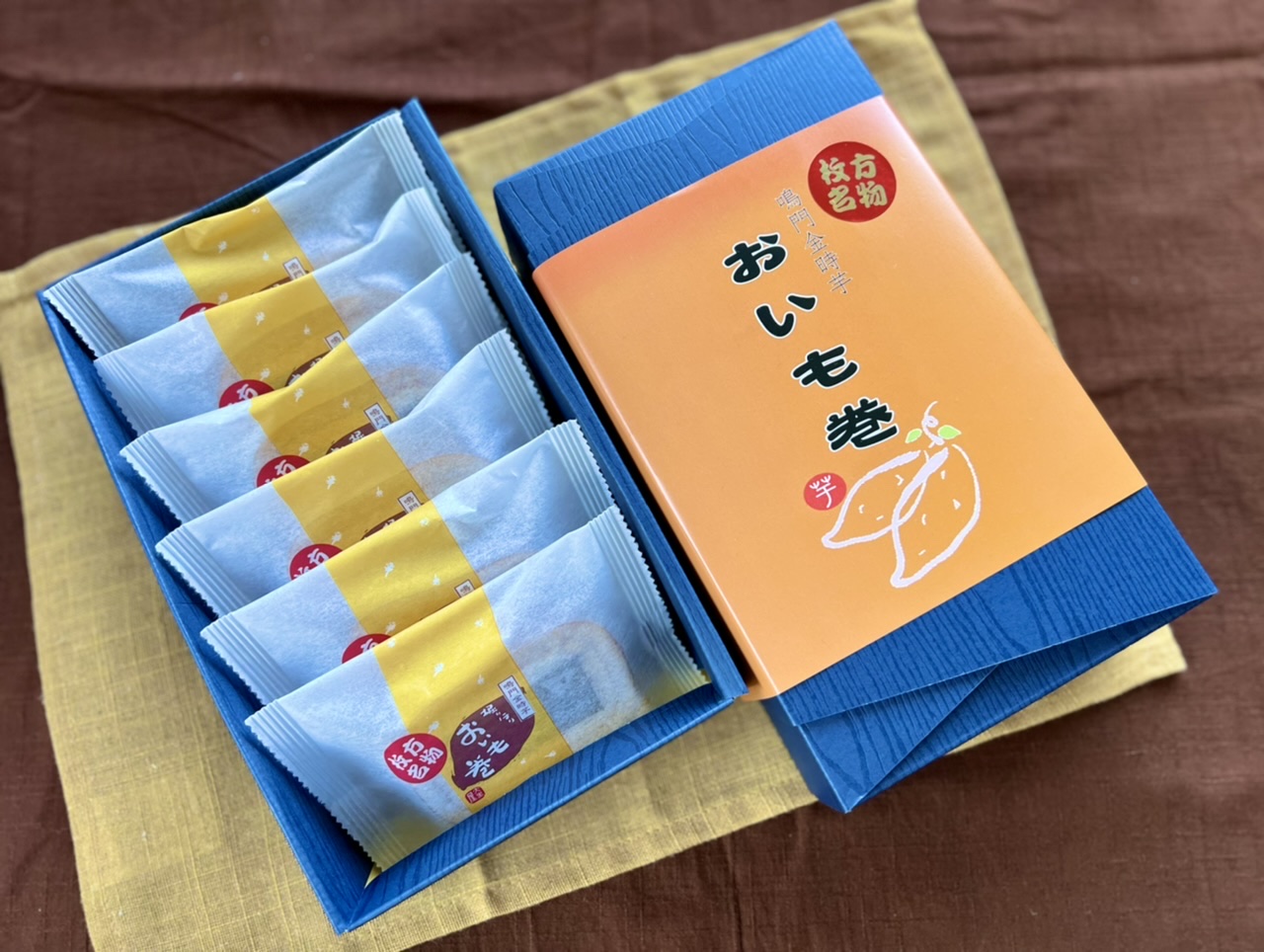 当店一番人気の「枚方名物 おいも巻」の個包装タイプの6個入った箱入りが、とても人気があります。 この秋、元々あったMサイズをリニューアルして販売したところ、「手土産にちょうどいいわ〜」ととてもよく出てます☺️ お友達などに、ちょっとした手土産としても。 是非お買い求めくださいね♪ 一箱 1150円(税込)