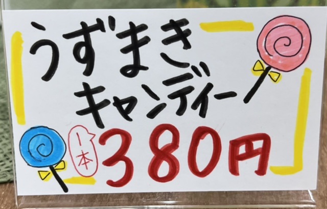 今日は、可愛い🍭キャンデーのご案内です。 見たそのままのネーミング(笑) 懐かしい「うずまきキャンディー」❗️ いちごミルク・クリームソーダ・パイナップル&レモンの 3種類あります。 お子さま・お孫さまにいかがですか?