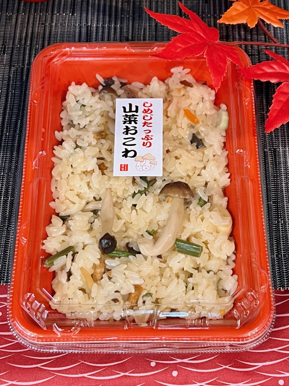 土日限定商品で人気の、季節のおこわ「しめじたっぷりおこわ」、お客様の「もう少し少ない方が…」とのお声が多かったため、食べきりサイズで登場❗️ 容器もレンジ対応になり、お手頃価格の324円に。 是非ご賞味くださいね♪