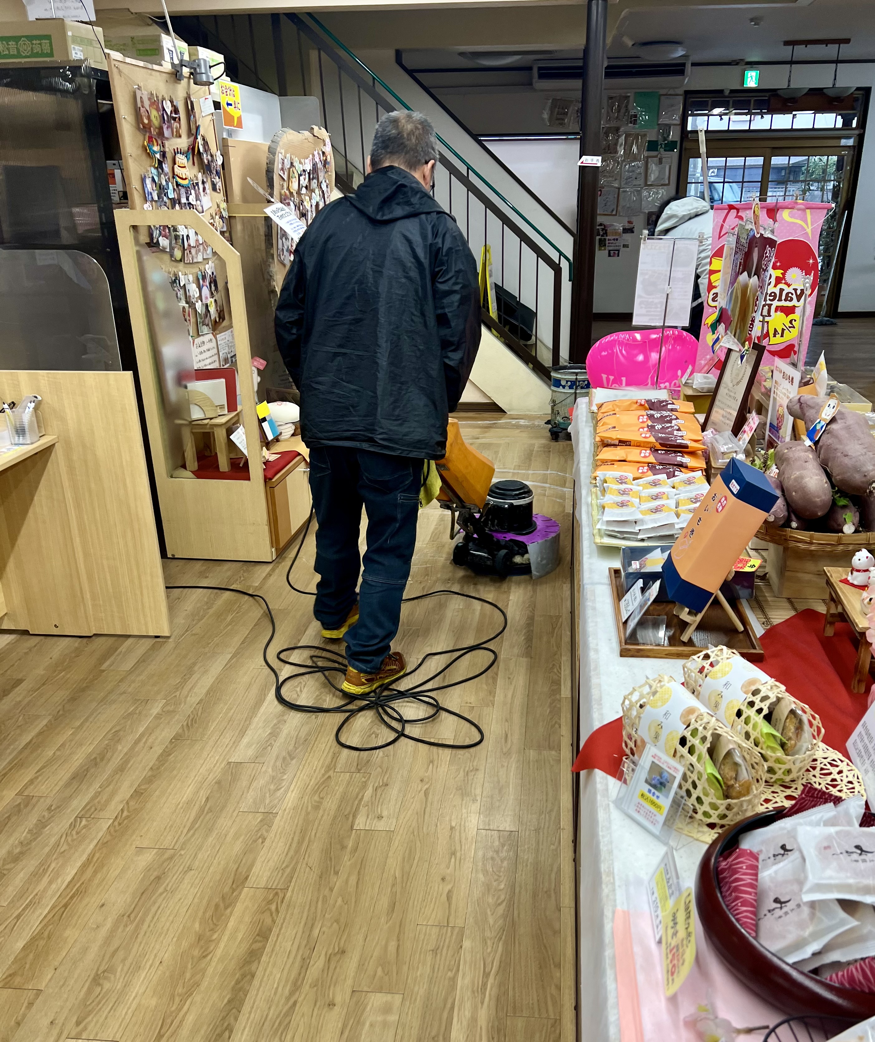 本日は全店休業日です。 大峰本店は「メンテナンス店休日」 今日は友達の業者さんに、フロアー全体の清掃・ ワックスがけをしていただいてます。 明日のご来店、心よりお待ちしております♪