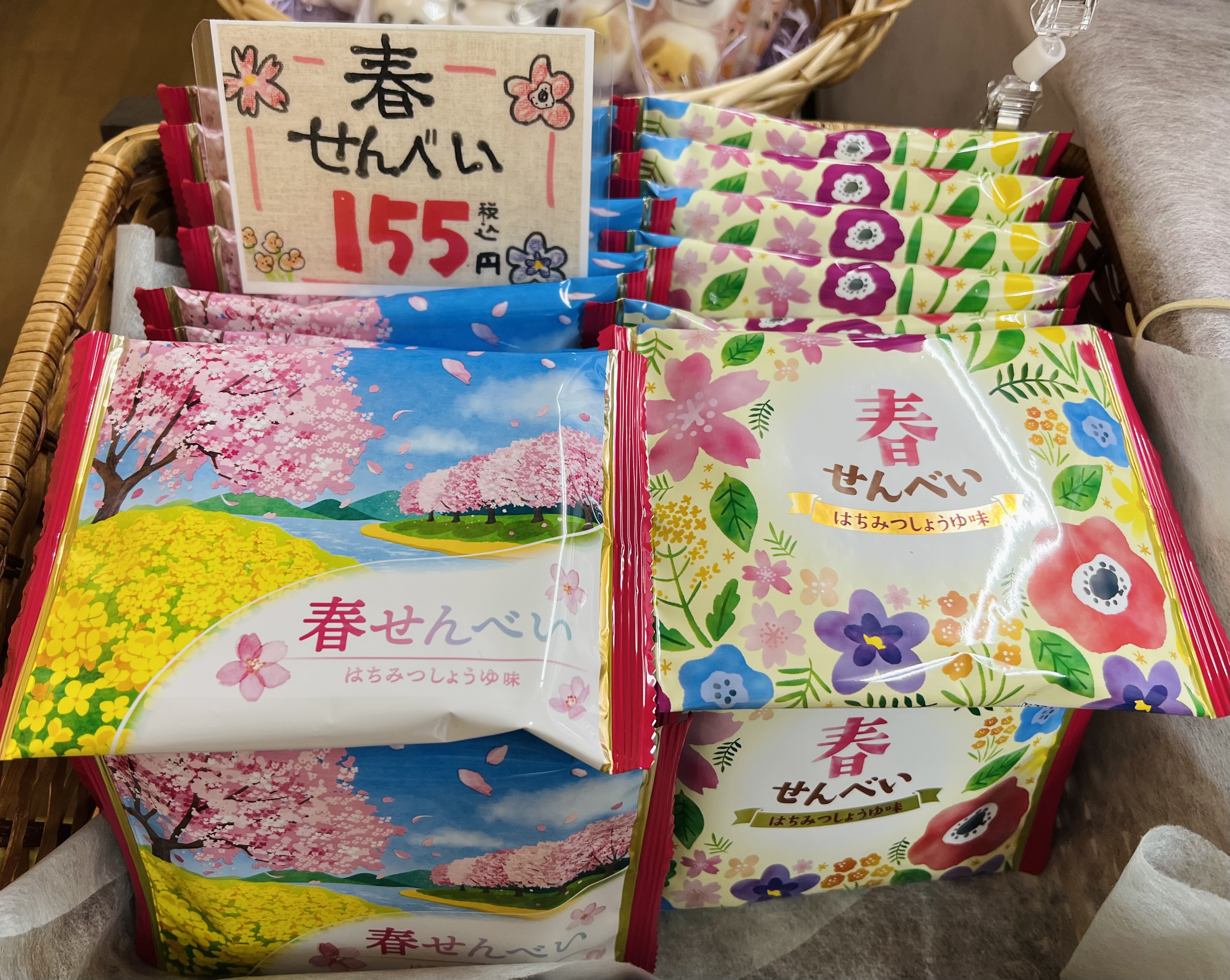 季節の揚げせんべいシリーズで人気の、 「春せんべい」が発売されました。 今週半ばからまたまた寒くなるそうですが、 🌸桜舞うパッケージで、春の暖かさを感じてくださいね。 ぜひご賞味ください♪