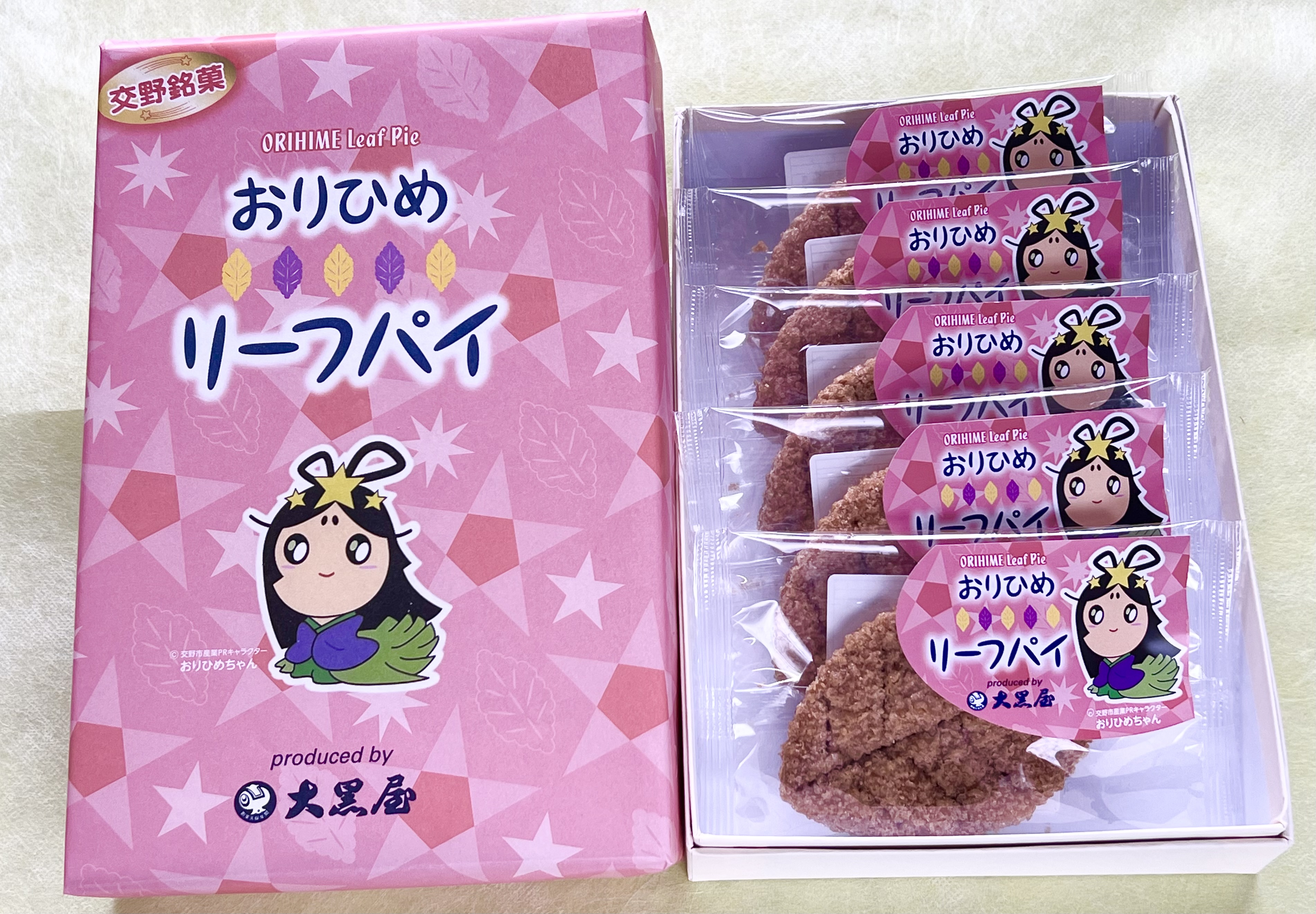 この春、大黒屋から「交野銘菓」を発売いたします! 先ずは4月上旬〜中旬に発売予定の「おりひめリーフパイ」です。 サクッとバターの香りが香ばしいリーフパイ❗️ フレッシュなバターと小麦粉で作ったパイ生地を 何層にも丁寧に折り重ね、じっくりと焼きました。 サクッと香ばしいバターの香りがたまらない! おやつやティータイムに♪ 交野市のキャラクター「おりひめちゃん」を デザインしたかわいいパッケージ! 手土産やご帰省のおみやげに、ぜひご利用ください。 ※価格等詳細は追ってお知らせいたします。