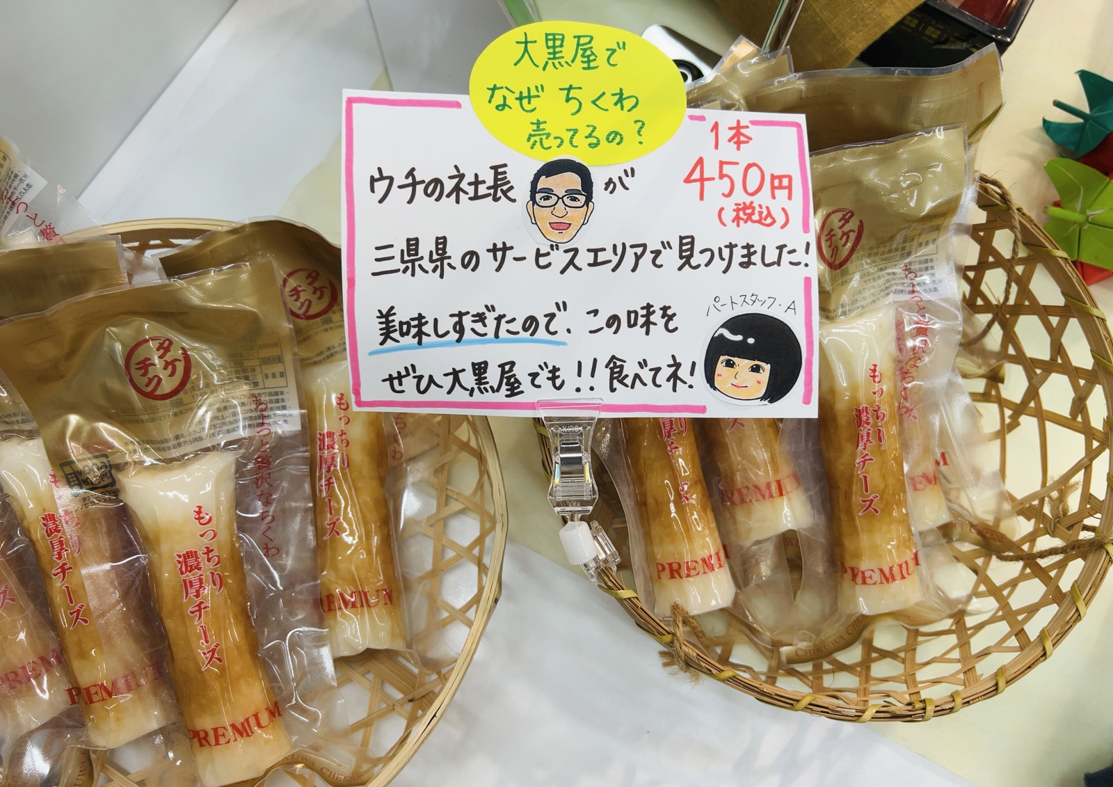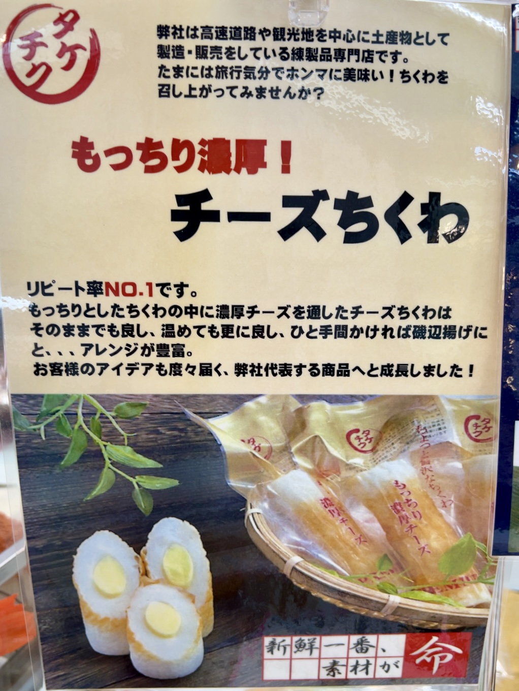 こんばんは🌙 いつもご愛顧いただき、ありがとうございます。 今日はお菓子以外ですが、皆さまに是非オススメしたい 商品があります。 それは「もっちり濃厚チーズちくわ」なんです😊 弊社社長が三重県のサービスエリアで買って食べたら「めっちゃ美味しかったー!」😋 ということで「メーカーに直接交渉して」仕入れる ことができました。 少々お値段張りますが、その価値は充分あると思います。 ちょっと贅沢な🍺のアテや、おやつ・おかずにもなります。 是非ご賞味くださいね♪ 1本入 450円