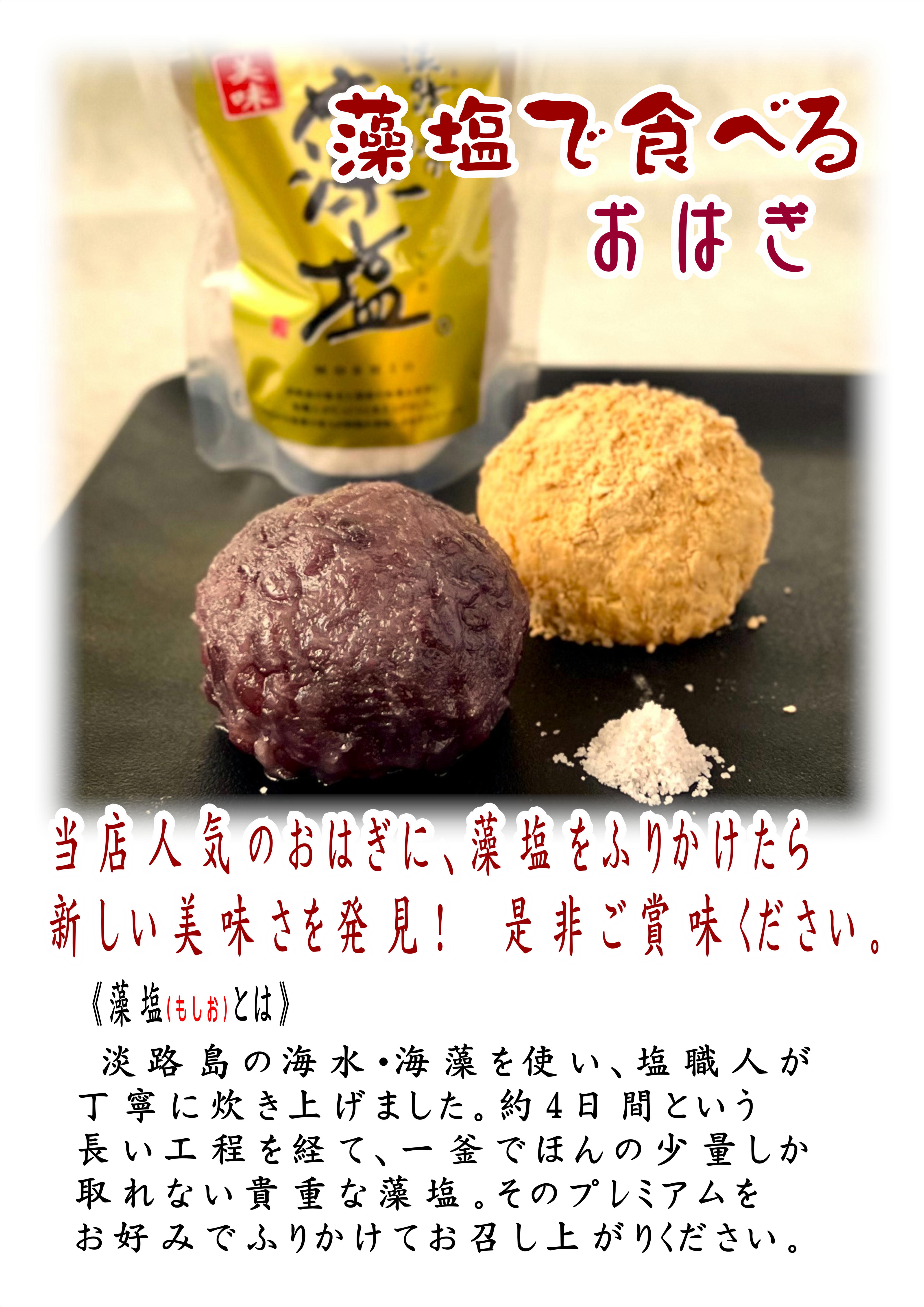 ※藻塩は淡路島の藻塩プレミアムの小袋をお付けして、お客様のお好みで振り掛けていただくスタイルです。