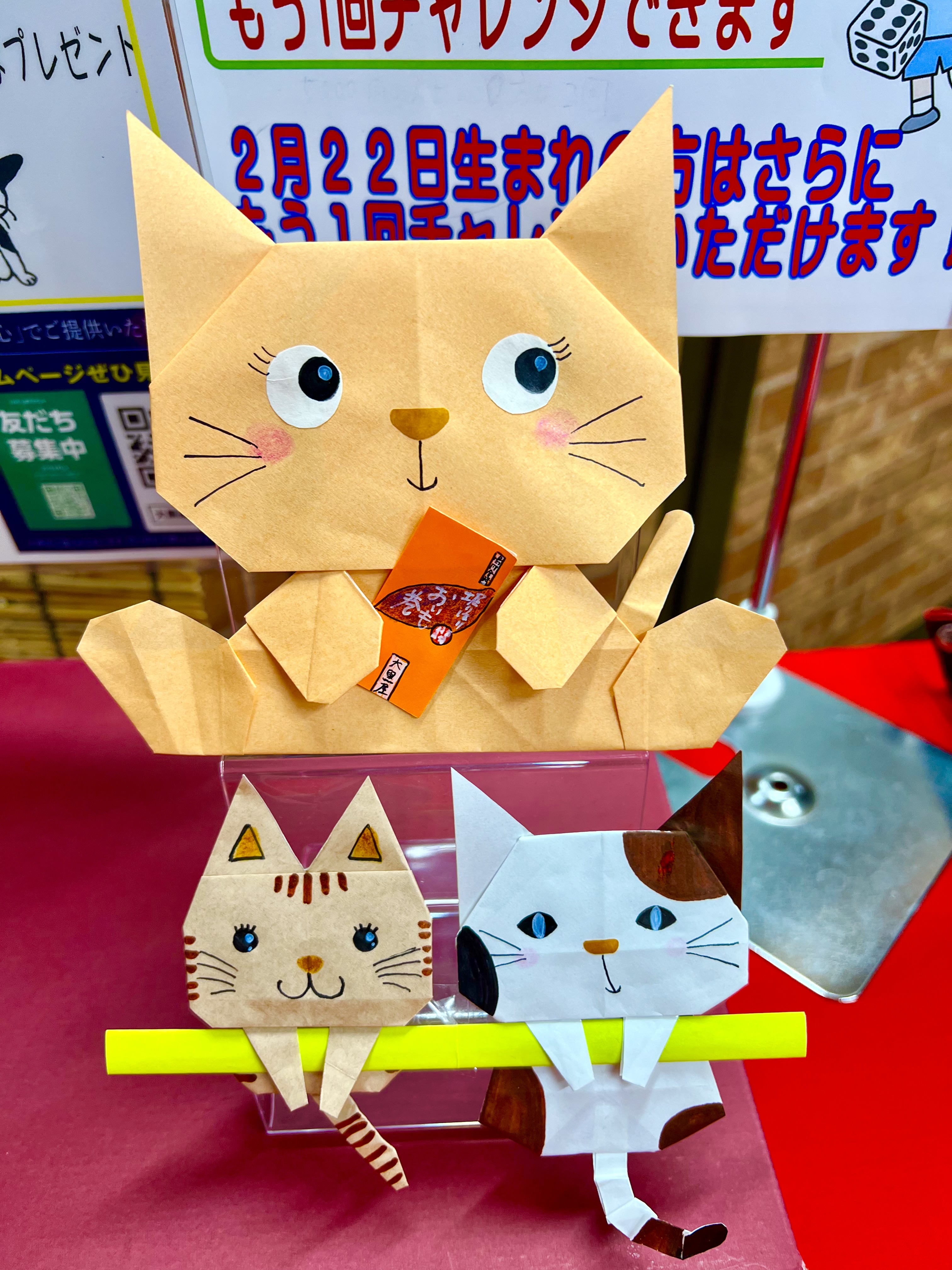 おはようございます☀️ 2.22今日はネコの日ニャーニャーニャー🐈 大黒屋全店でイベントやってます! 数量限定「かわいい猫の上生菓子」交野のカジパン工房さんにお願いして焼いていただいた「肉球クリームパン」‼️ お誕生日が「2/22」・「2月生まれ」「22日生まれ」の方には、粗菓プレゼント。 🎲サイコロゲームもやってます! ※金額に関わらず、お買い上げの方1回できます! 皆様のご来店お待ちしております♪