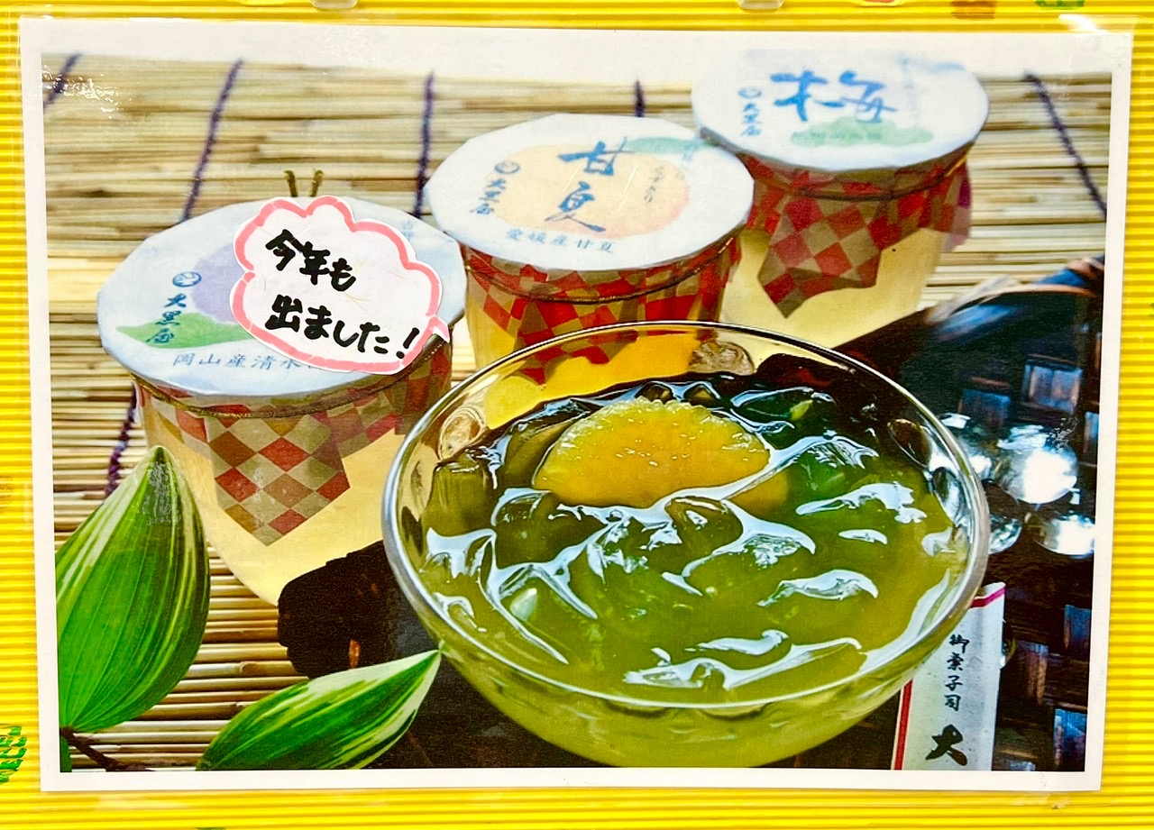 今年も登場。初夏の涼菓「吉野本葛入りくずきり」の販売を始めました。 「紀州南高梅入り」「愛媛甘夏」の2種類がございます。 甘さ控えめで「つるっとした喉ごし」が、初夏の訪れを感じさせます。 お日持ちいたしますので、コレからの季節の手土産や お供えなどに多くご利用いただいております。 また、4個入りなど箱入りも、順次店頭に並んでいきます。 おひとつ 380円(税込) 🎐つめたく冷やしてお召し上がりください。