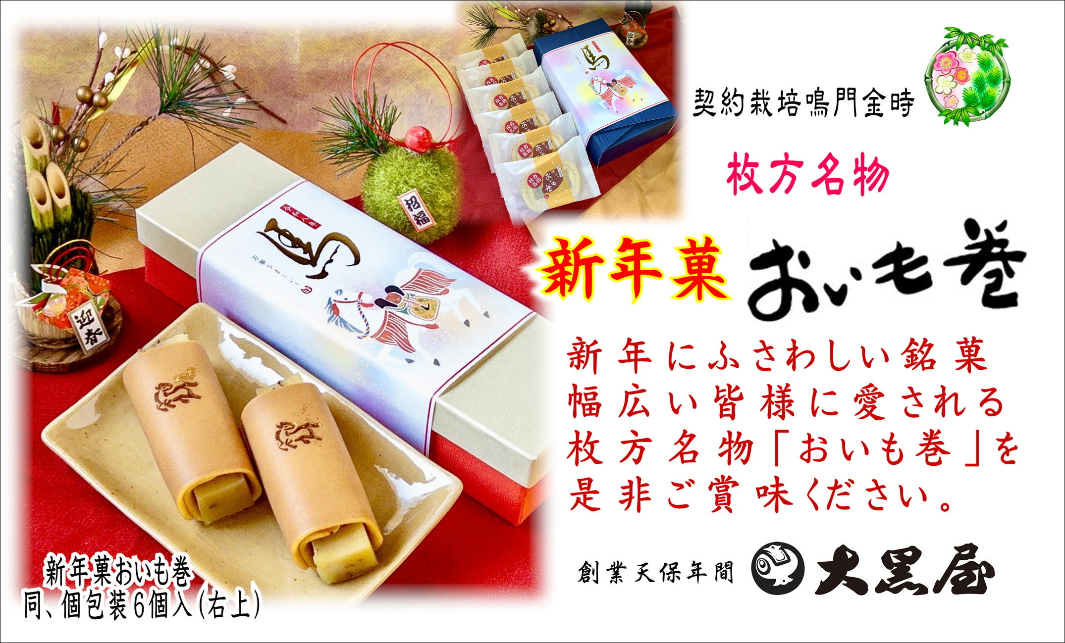 こんにちは☺️ いつもありがとうございます。 本日より🎍「新年菓おいも巻」の販売を始めました! ✨お年賀に最適です❗️ 是非お求めくださいね♪ また🍓いちご大福、年内は12/31まで、年始は1/2より限定数で販売いたします。 皆様のご来店、心よりお待ちしております☺️
