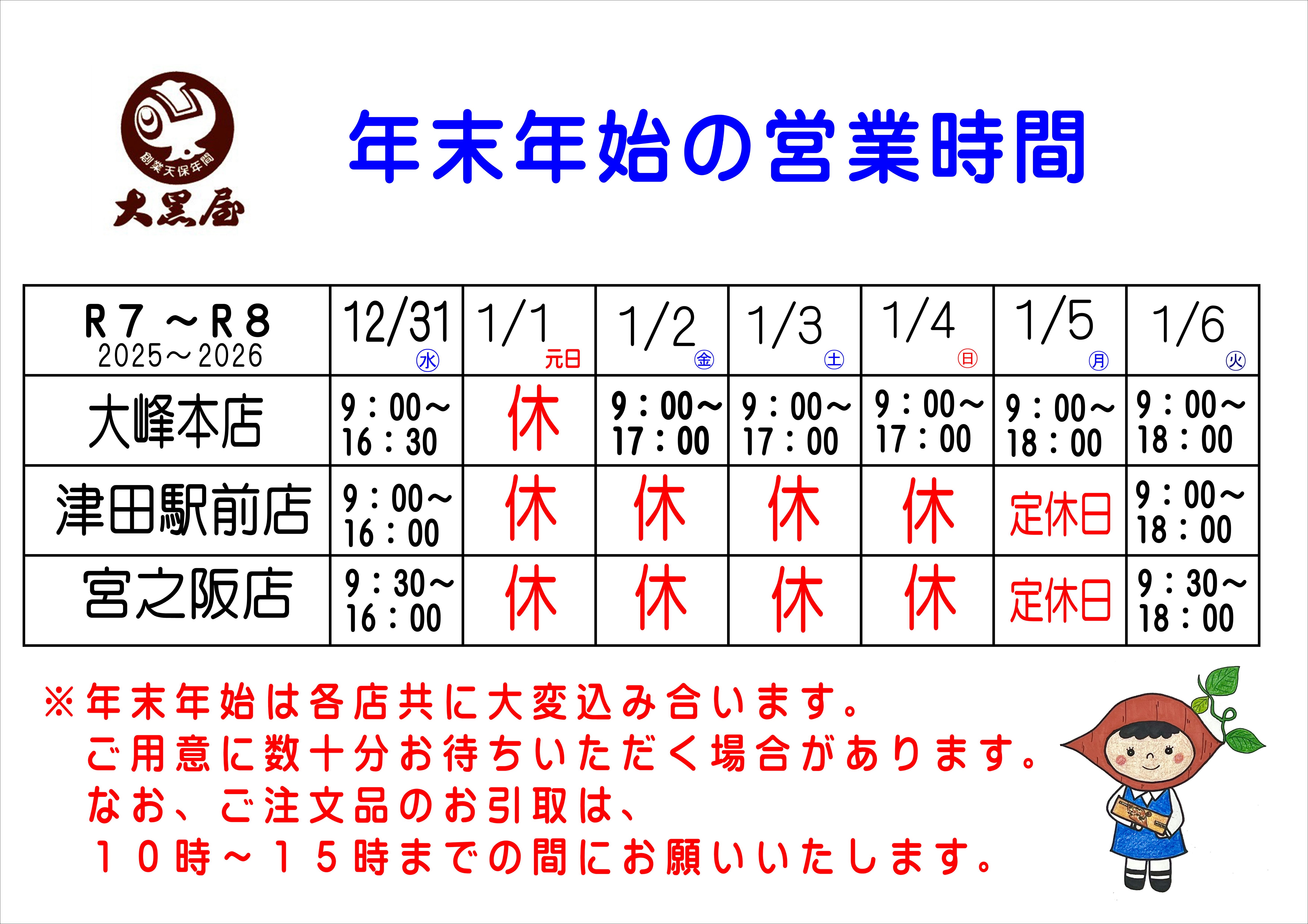 ◎店内が大変混み合う時間帯がございます。時間に余裕を持ってお越しください。