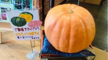 お店に入ってすぐのところに、 「巨大カボチャ」が鎮座しております(笑) 近々重さ予想クイズを開催する予定です! 開催の時はこのようブログでもおしらせしますね(^^)