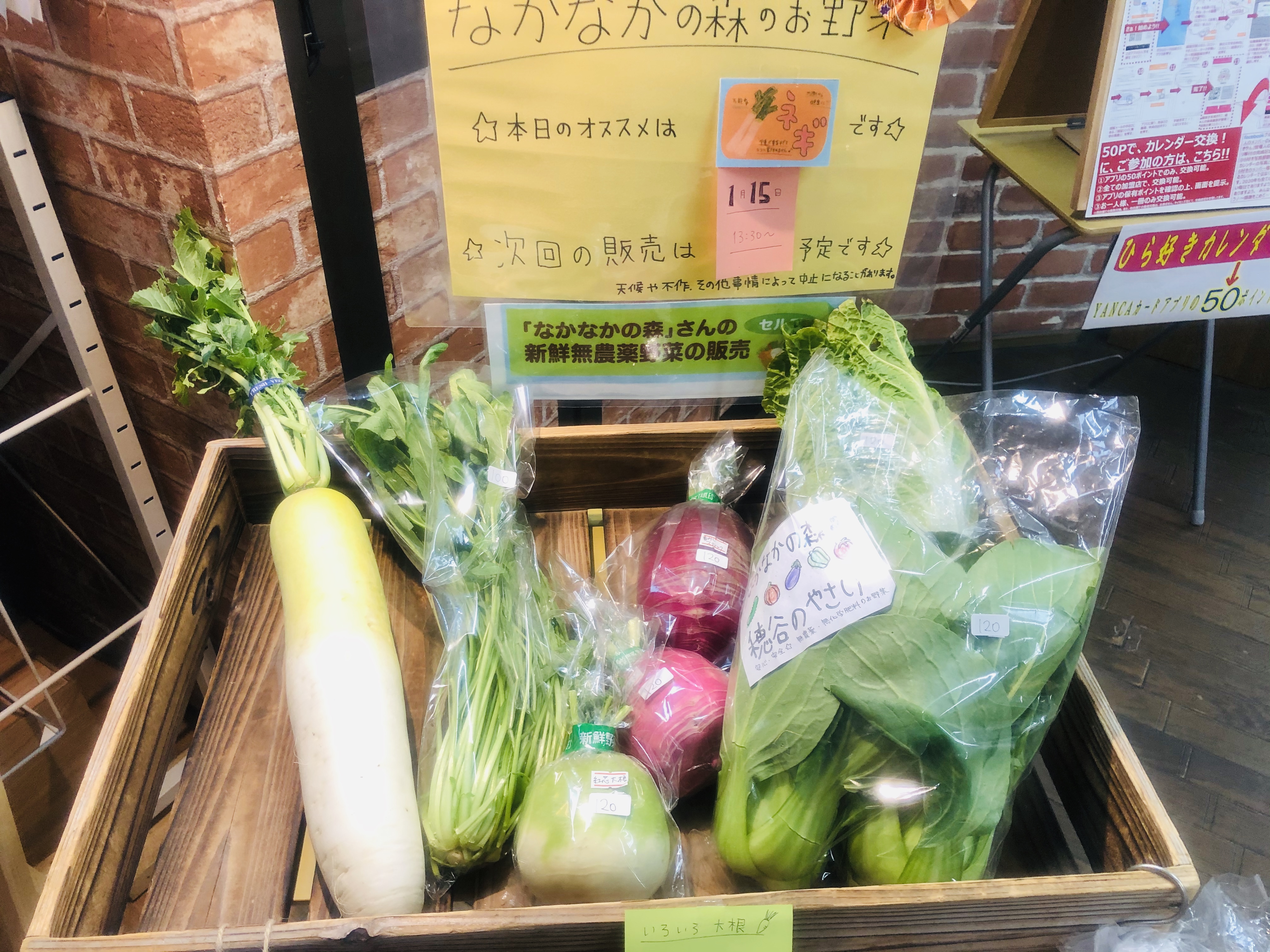 なかなかの森さんの無農薬新鮮野菜が入荷しました!画像の他にもブロッコリー🥦などもありましたが、一瞬で売れてしまいたさました。