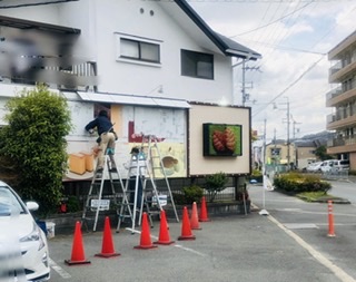 本日東側の看板をリニューアルしてます。 駐車場が狭くなっております。 ご迷惑をお掛けしますが、よろしくお願いいたします。 新しくなるのが楽しみです(^.^)