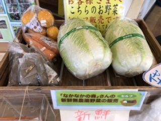 たった今、なかなかの森さんの新鮮野菜と果物が入荷しました。 今日は、白菜・大根・さつまいも… 無農薬栽培なので安心・美味です。 次々売れてますので、売り切れの節はごめんなさい。