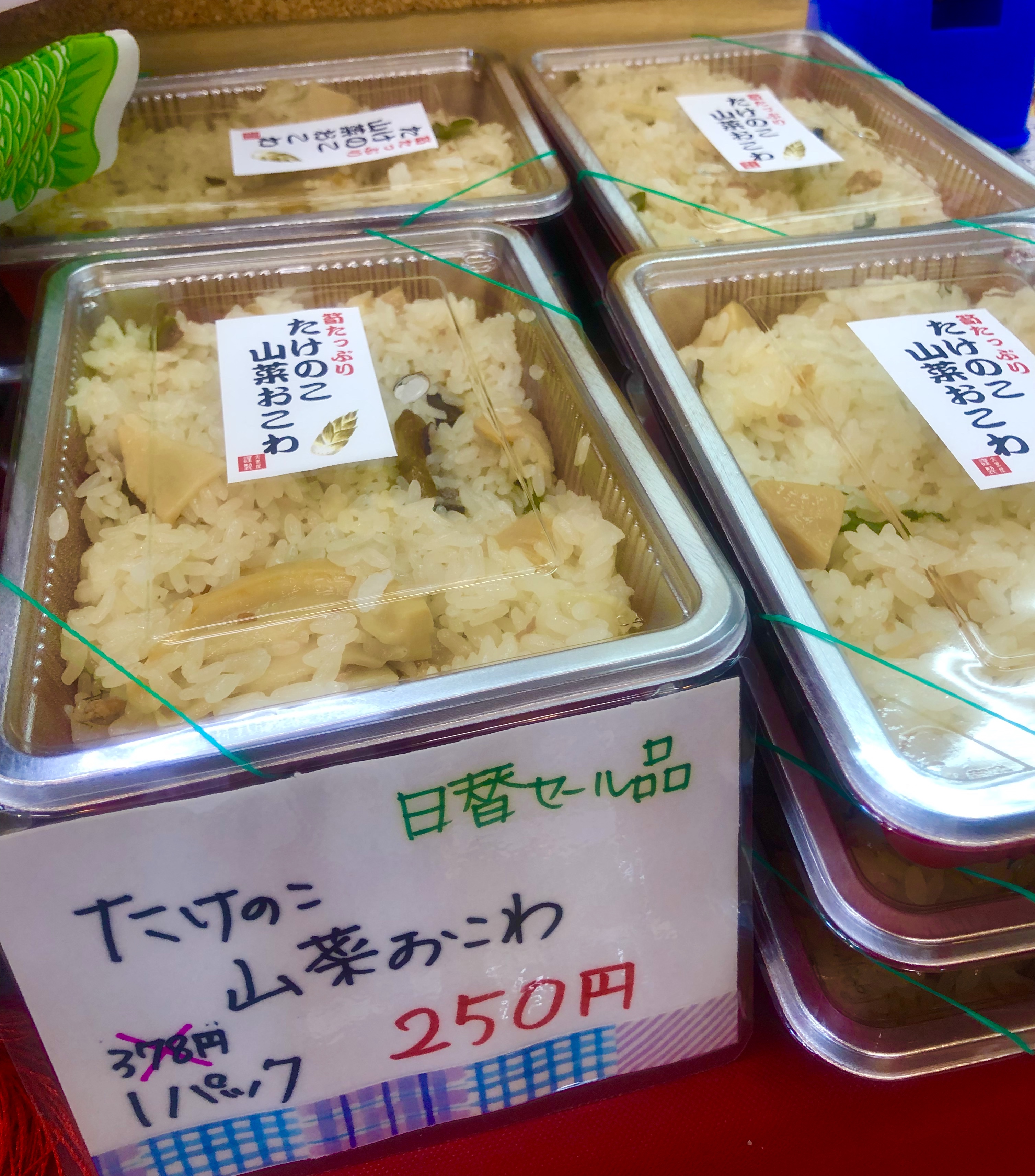 津田駅前店限定! 本日のご奉仕品は「筍たっぷり 山菜おこわ」 です。 具沢山で味わいのある、人気のおこわです。 限定数量販売ですので、無くなり次第売り切れとなります。