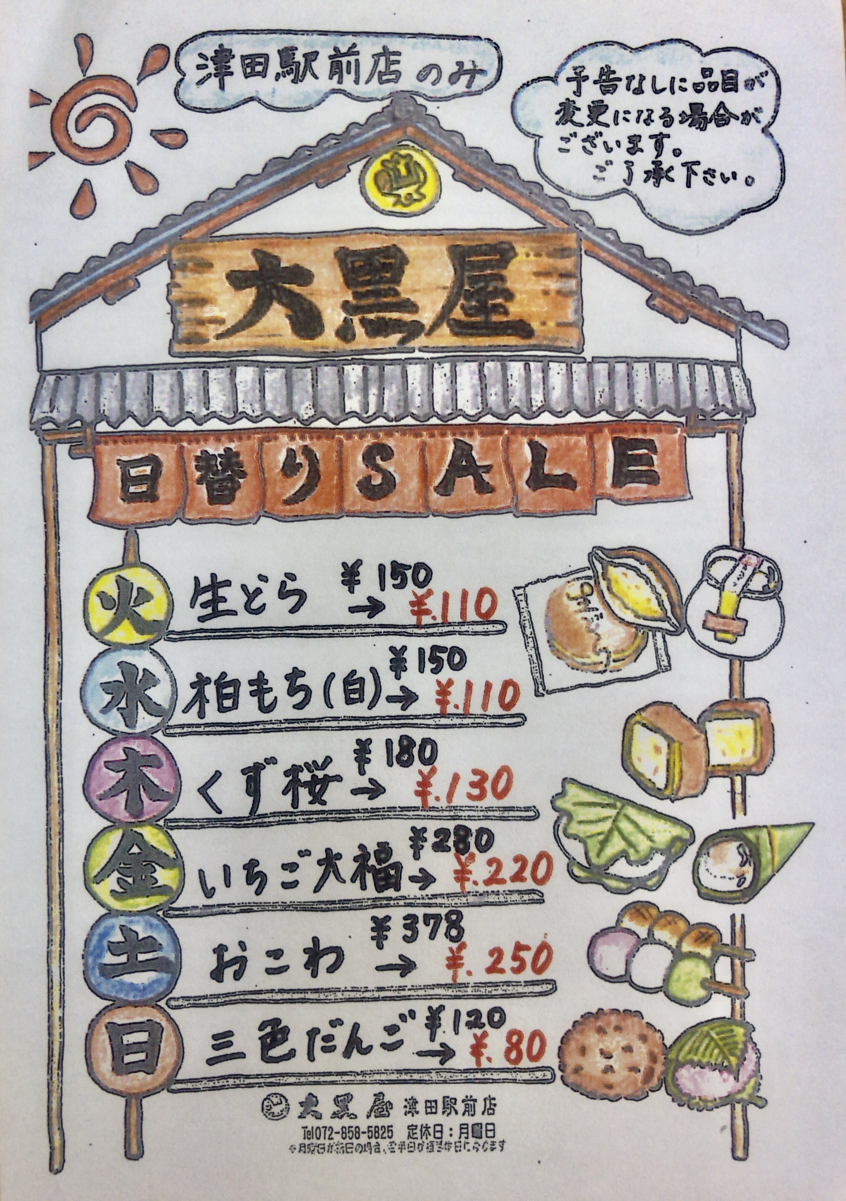 津田駅前店限定の日替わり ご奉仕品、本日はお団子の定番 「🍡三色だんご」です。 特にお子さまに人気があります! 数量限定ですので、お早めに ゲットしてくださいね😊