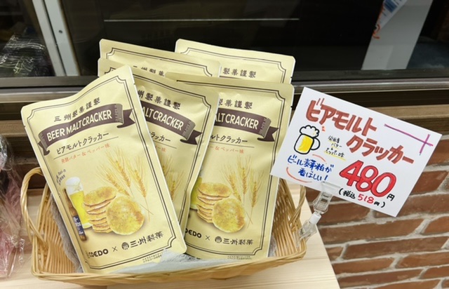 話題のクラッカー新発売! 埼玉県春日部市にある「三州製菓」とクラフトビール「COEDO」のコラボ企画商品「ビアモルトクラッカー」の販売を始めました! 「ビアモルトクラッカー」は「COEDO瑠璃-Ruri-」の麦芽粕を練りこんだおつまみライスクラッカーです! ぜひご賞味ください。